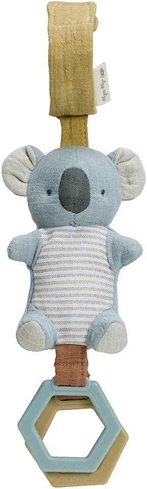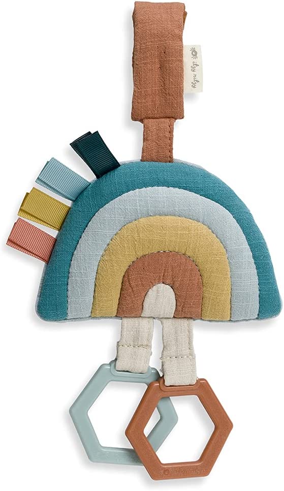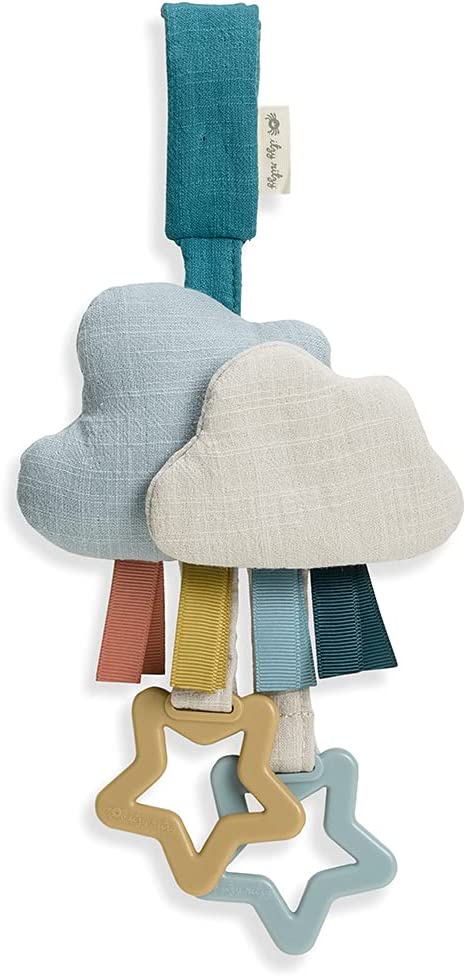 Let’s Explore! Our Ritzy Jingle™ from our Bitzy Bespoke collection is the playful pick-me-up your little one can’t resist! Design with sensory play in mind, this baby travel toy is crafted with soft natural cotton and features a jingle ball inside to envelop baby with its gentle sound. Dangling rings and ribbons create different textures for your babe to grasp onto during your next adventure. Whether it’s a road trip or a walk through the neighborhood, easily fasten the Ritzy Jingle onto a car seat or stroller for on-the-go fun.